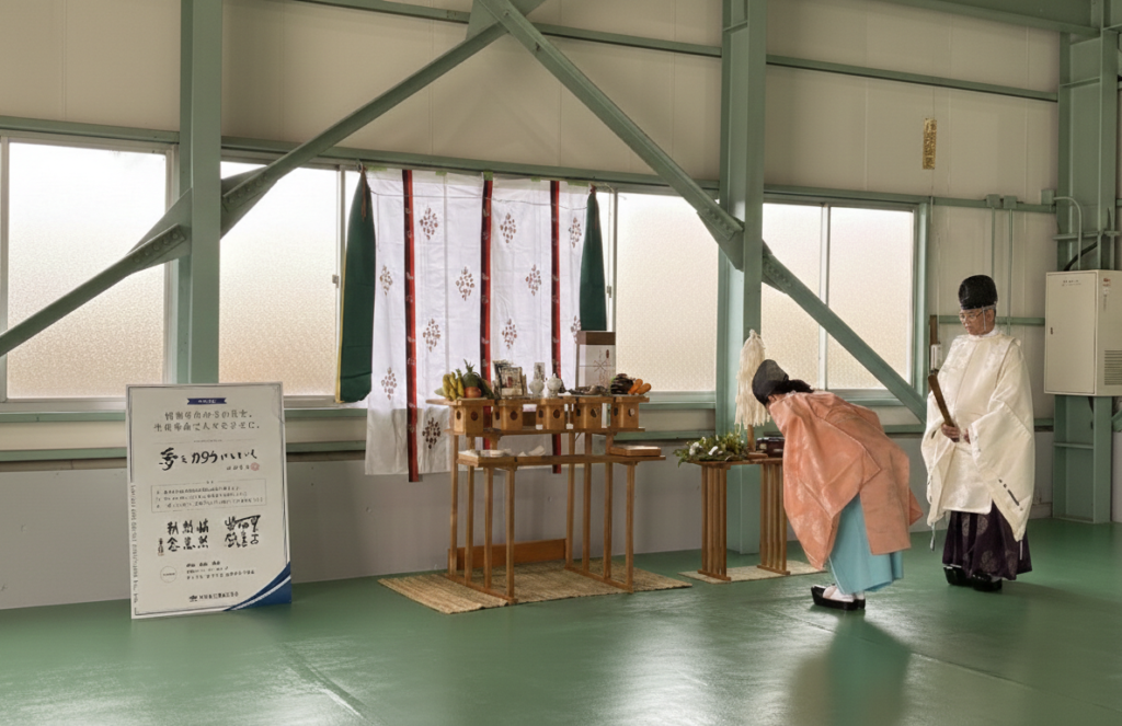 これに伴い、工場内にて花垣神社様による安全祈願祭を執り行い、今後の操業の安全と事業の発展を祈念致しました。